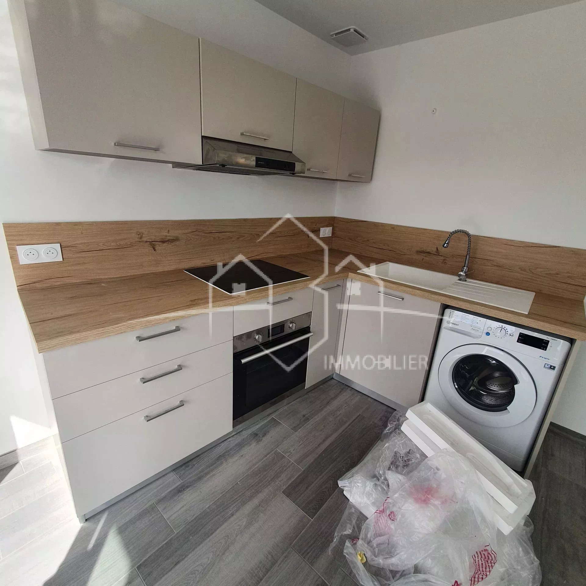 Référence 7419312 — L1373, A LOUER au centre du village de FARAMANS, magnifique appartement de type 2 de 35.15m² comprenant : une cuisine meublée et équipée, une salle d'eau / WC, une chambre, un box d'environ 10m² et sa terrasse d'environ 22m². Chauffage réversible par aérothermie.